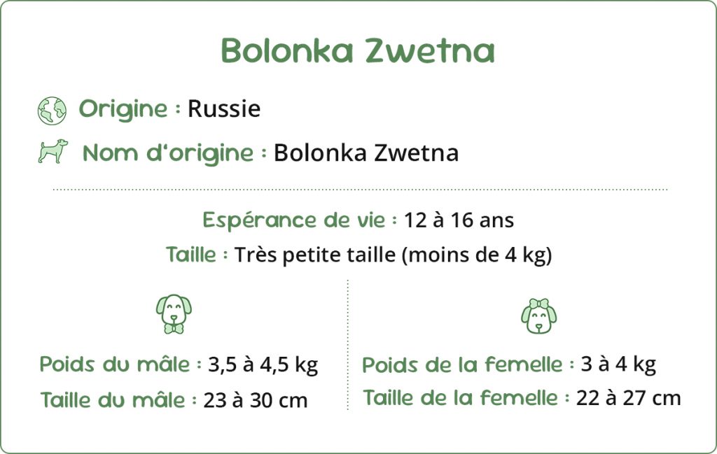 Le Bolonka Zwetna (ou Bolonka de couleur, “Zwetna” signifiant “coloré” en russe) est une race russe dont les origines remontent au 18ᵉ siècle.