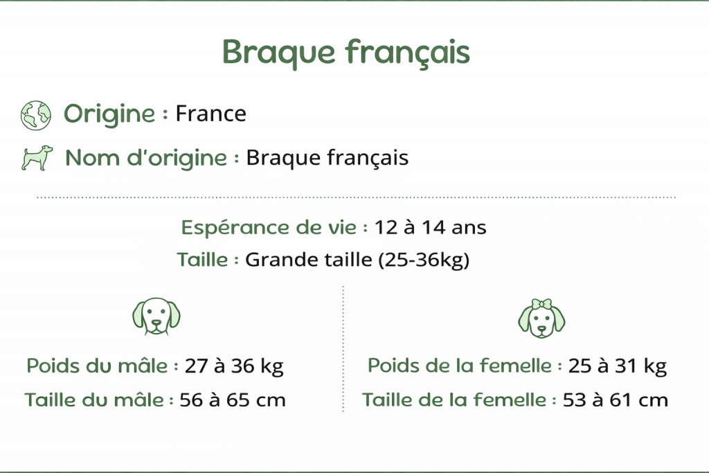 Le Braque français est un chien actif qui a besoin d’un mode de vie adapté à son énergie et à ses origines de chasseur.