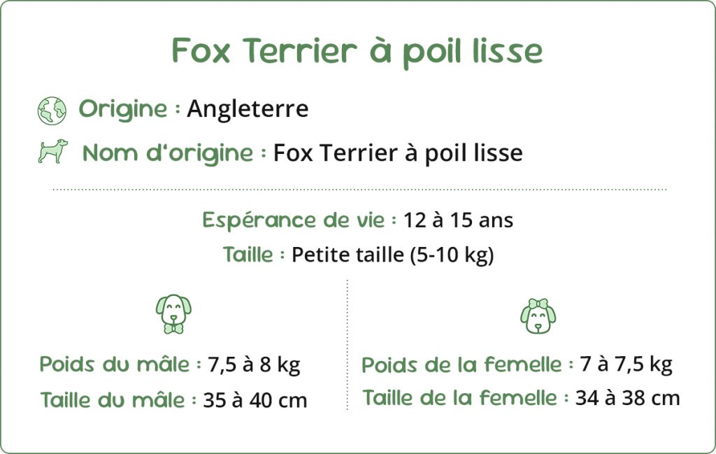 Le Fox Terrier à poil lisse est un chien de construction carrée, athlétique, élégant et puissant sans lourdeur. Tout chez lui respire la vivacité et l’équilibre.