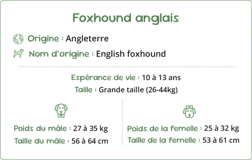 Le Foxhound anglais bénéficie généralement d’une espérance de vie de 10 à 13 ans.