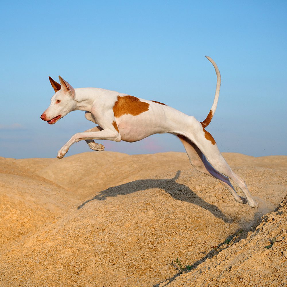 L’Ibizan Hound impressionne par sa silhouette gracieuse et musclée. Il dégage une impression de légèreté et de puissance, rappelant celle d’un cerf.