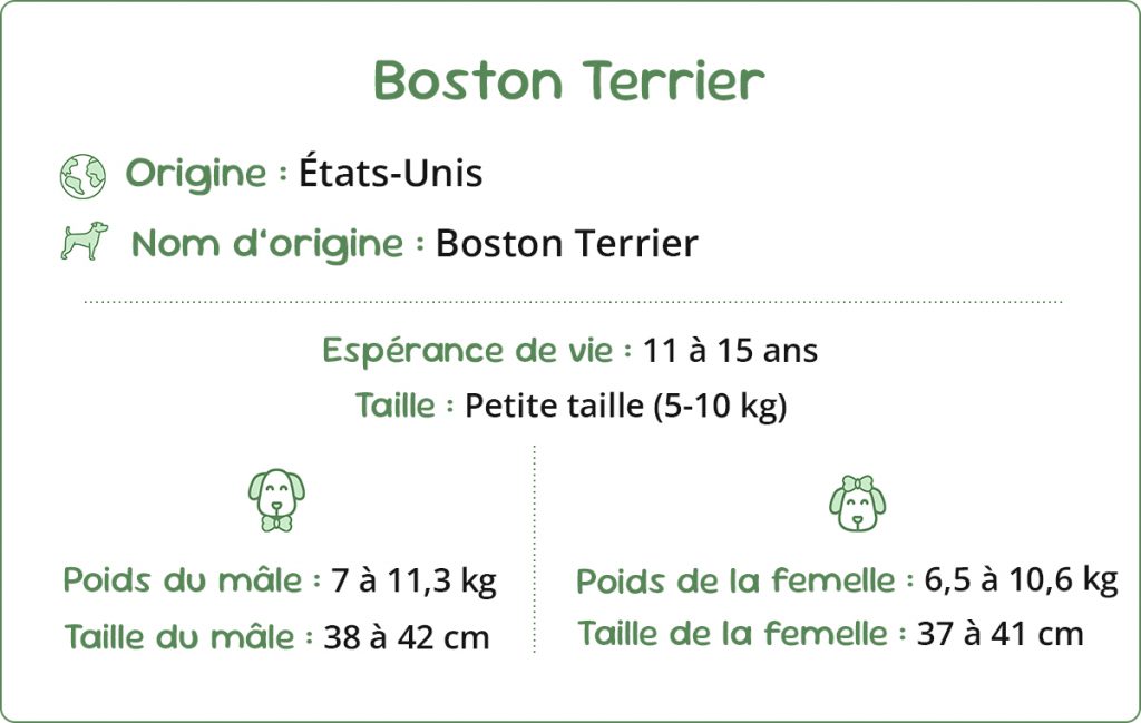 - Adoption : Possible via des associations spécialisées dans les races brachycéphales ou les petits chiens. Des Bostons peuvent être abandonnés pour des problèmes de santé (coûteux) ou de comportement (rare).