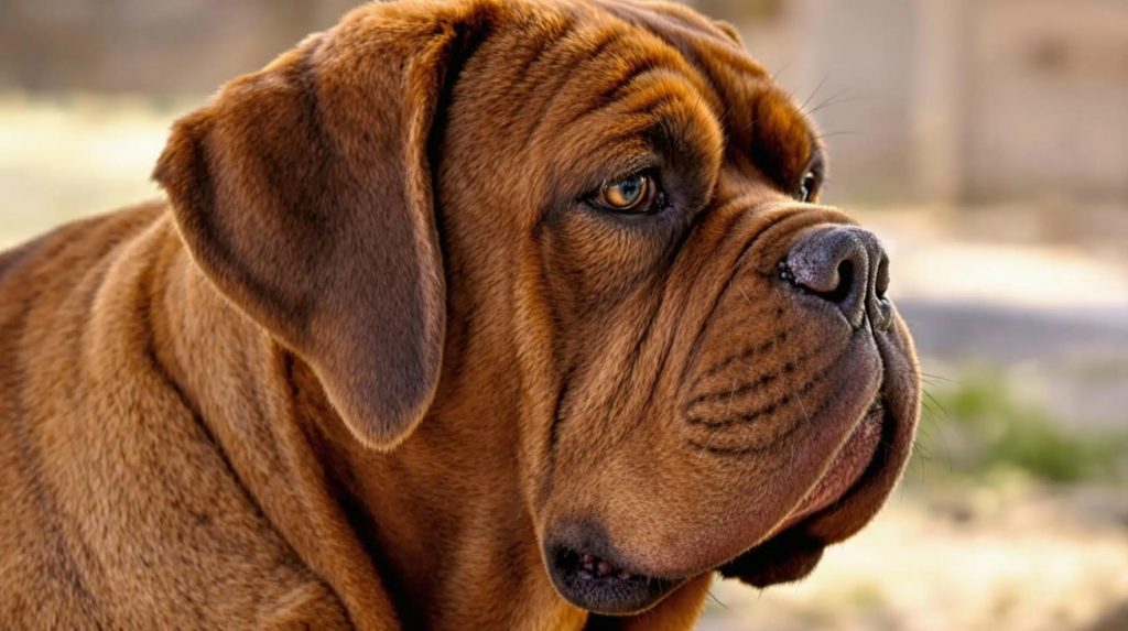 Le Dogue de Bordeaux est un chien massif, puissant et athlétique, dont la silhouette inspire à la fois la force et une certaine majesté.
