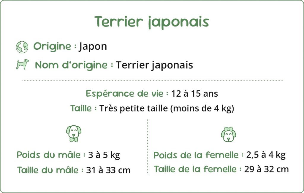 Le terrier japonais est un chien de compagnie par excellence, réputé pour son tempérament équilibré, affectueux et joyeux, mais moins rustique que les terriers européens.