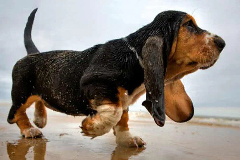 La boiterie des postérieurs apparaît chez le chiot ou le jeune adulte. Il a du mal à se lever, fait le “lapin” en courant (les deux pattes arrière ensemble), se fatigue vite.